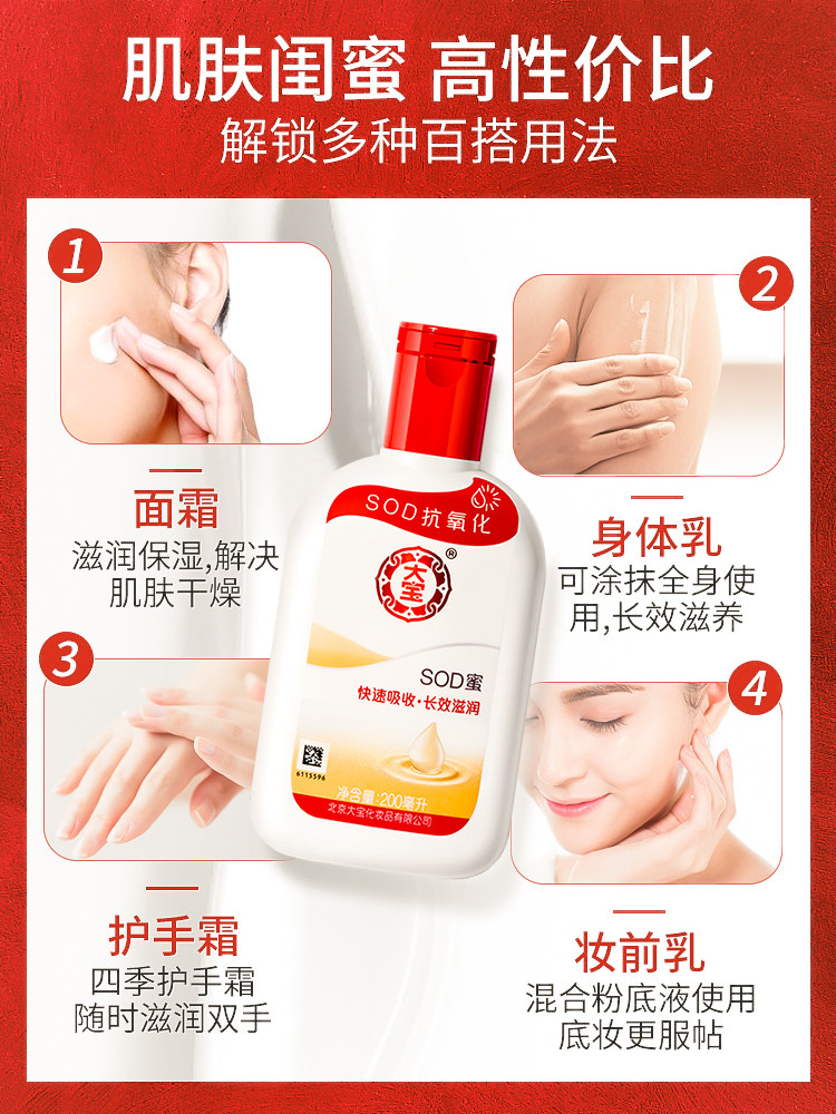 大宝SOD蜜200ml*2瓶装 补水保湿滋润男女士通用乳液面霜护肤正品