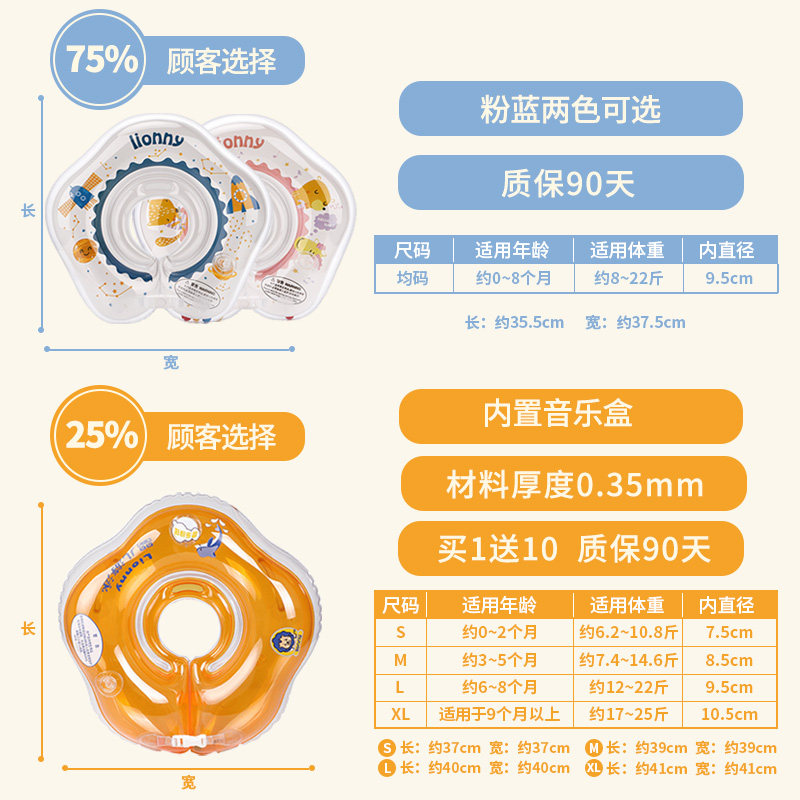 swimbobo婴儿游泳圈脖圈新生儿宝宝防呛颈圈洗澡项圈0-12个月家用
