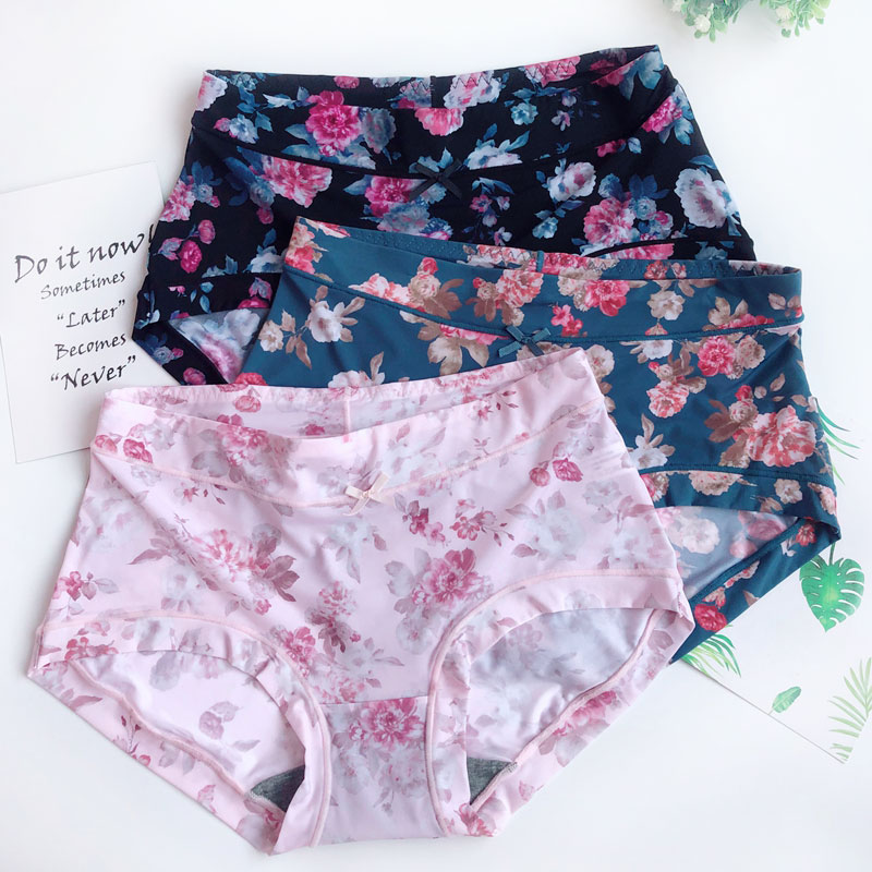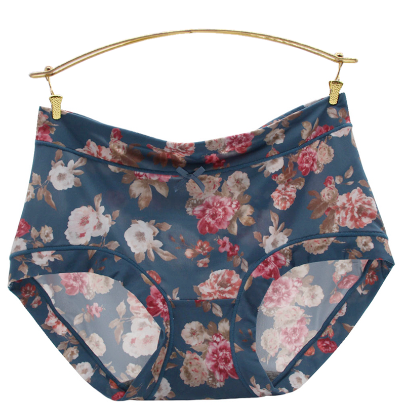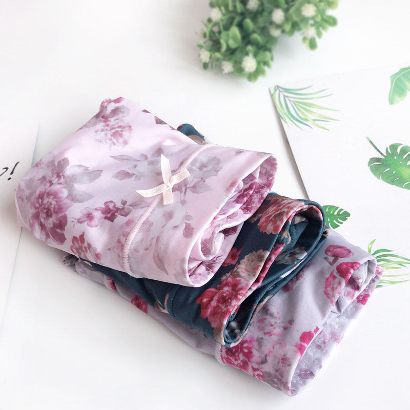四条彩田内裤女牛奶丝滑冰丝超薄无痕中高腰莫兰迪印花包臀平角裤