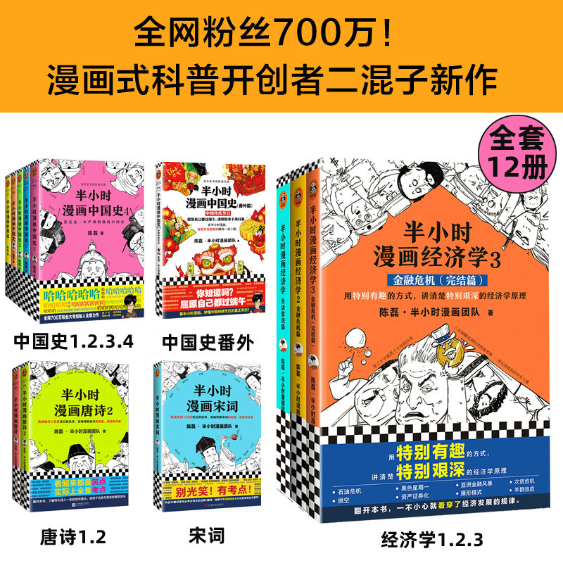 领券减】全套12册半小时漫画中国史1234+世界史+唐诗12+宋词+经济学123+番外篇 二混子陈磊团队著漫画式科普严谨幽默读史新潮