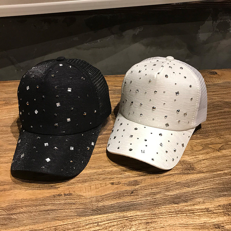 帽子女夏天遮阳透气鸭舌帽韩版百搭休闲镶钻棒球帽户外出游太阳帽
