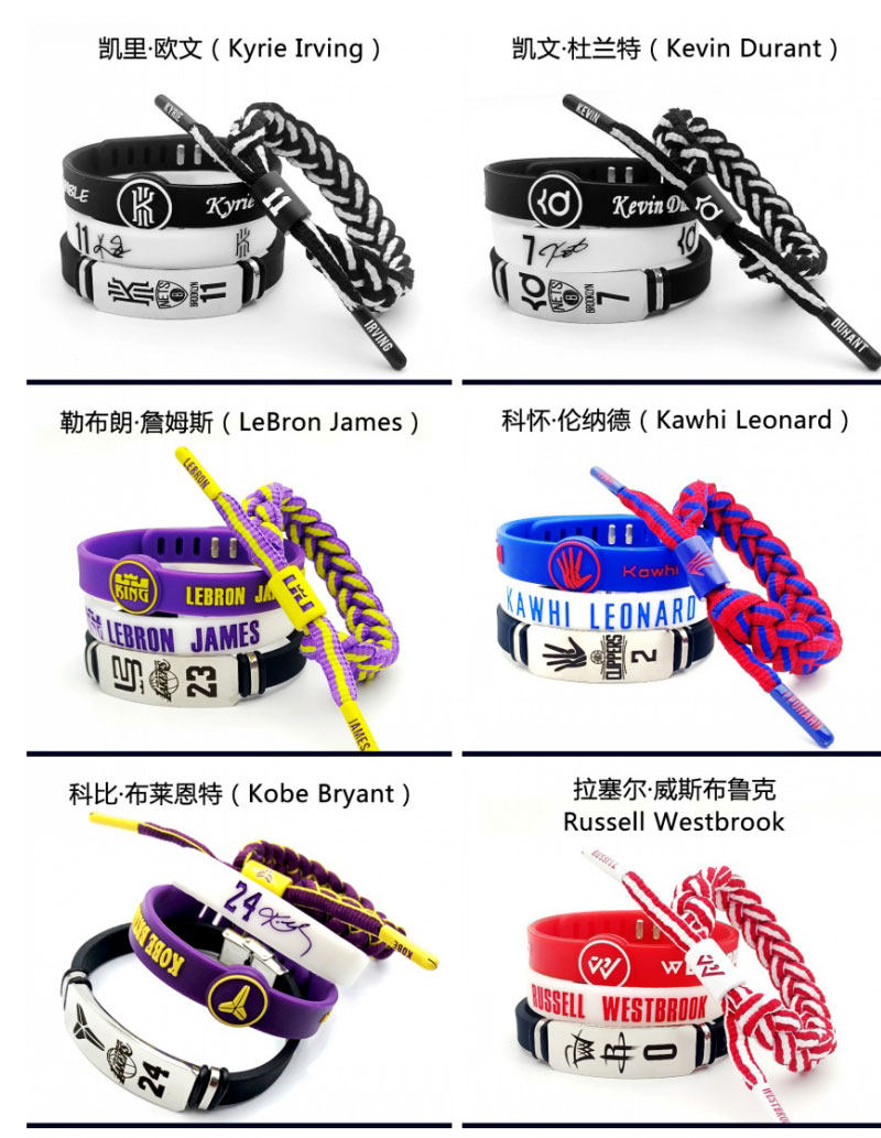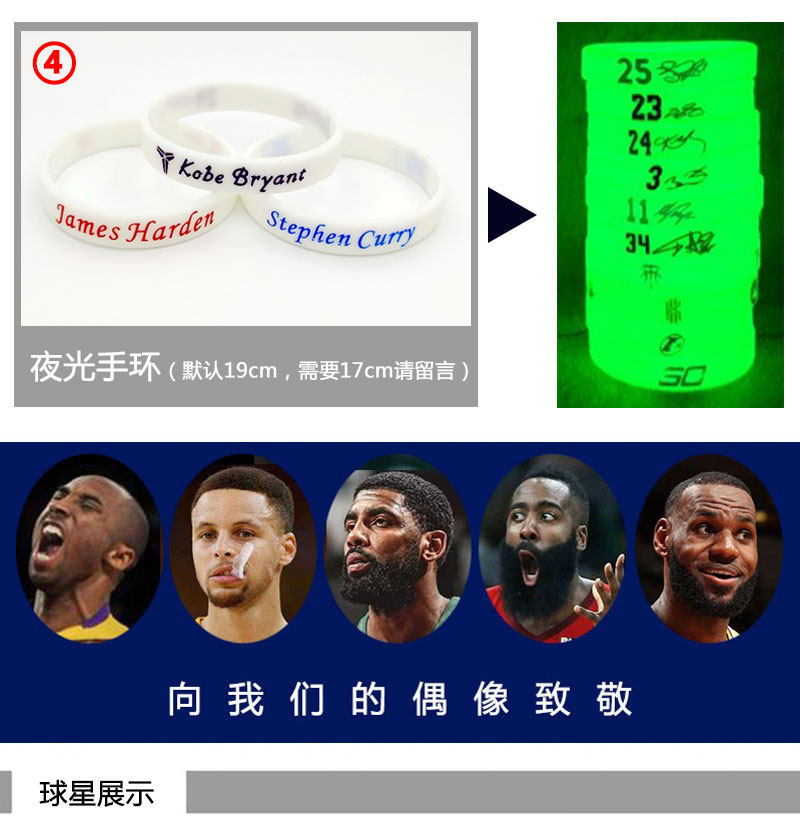 编织手绳运动篮球手环男学生硅胶球星詹姆斯欧文科比库里哈登夜光