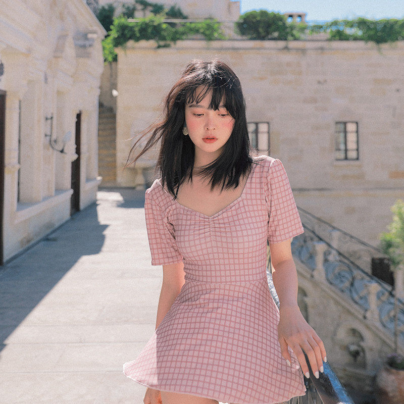 2021年新款连体泳衣女夏保守遮肚显瘦学生可爱日系复古温泉仙气