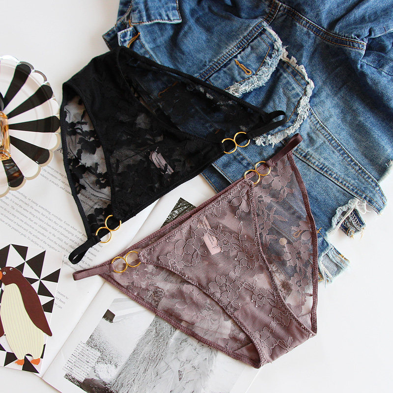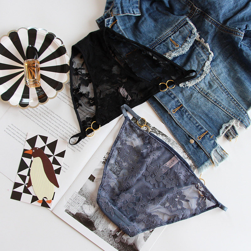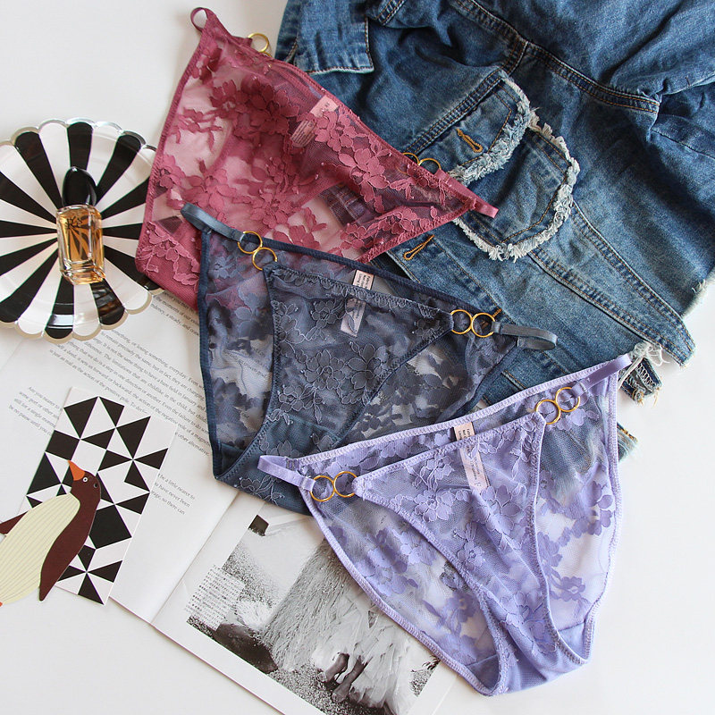性感蕾丝内裤女低腰纯棉裆透气薄火辣细带镂空轻奢网纱少女三角裤