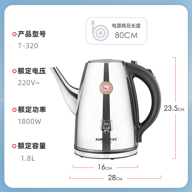 金灶T-320大容量电热水壶304不锈钢家用全钢自动断电开水热烧水壶