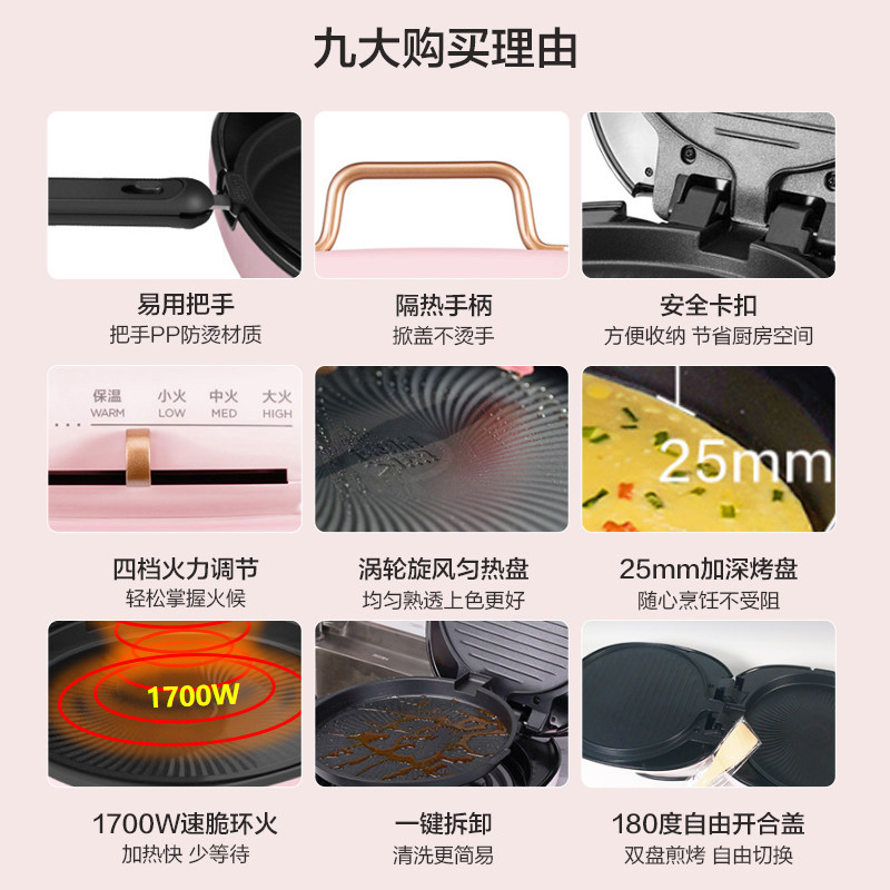美的电饼铛饼档家用双面加热多功能烙饼锅加深加大可拆洗拆卸正品