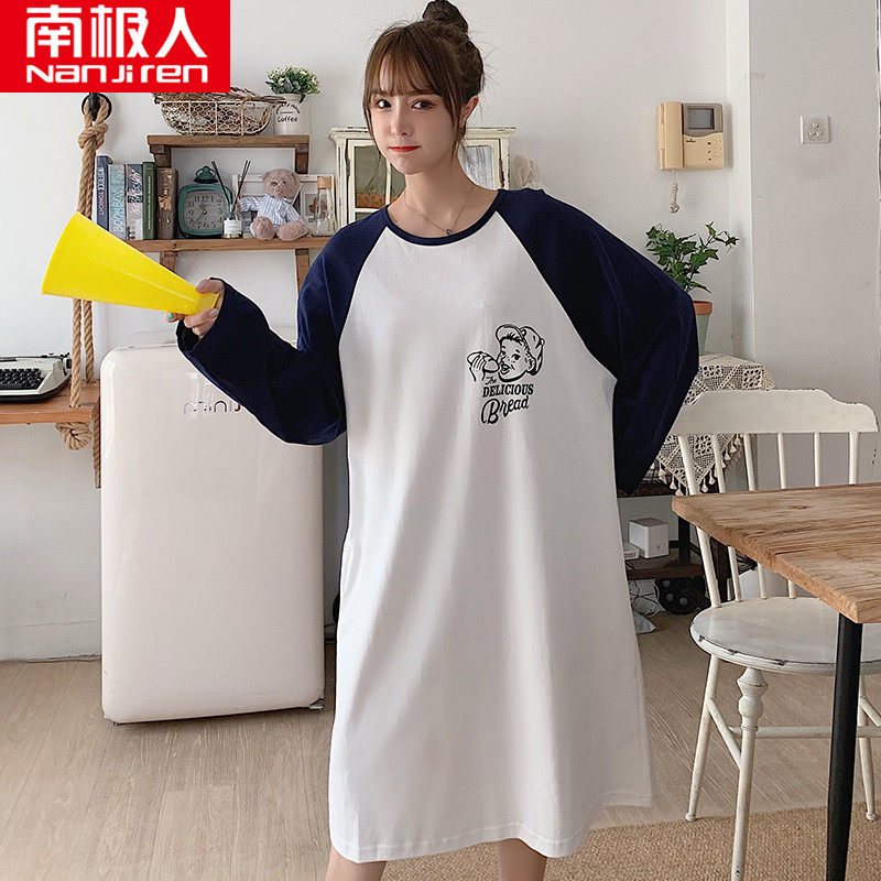 南极人睡裙夏季薄款纯棉长袖中长款睡衣女学生宽松春秋冬天家居服