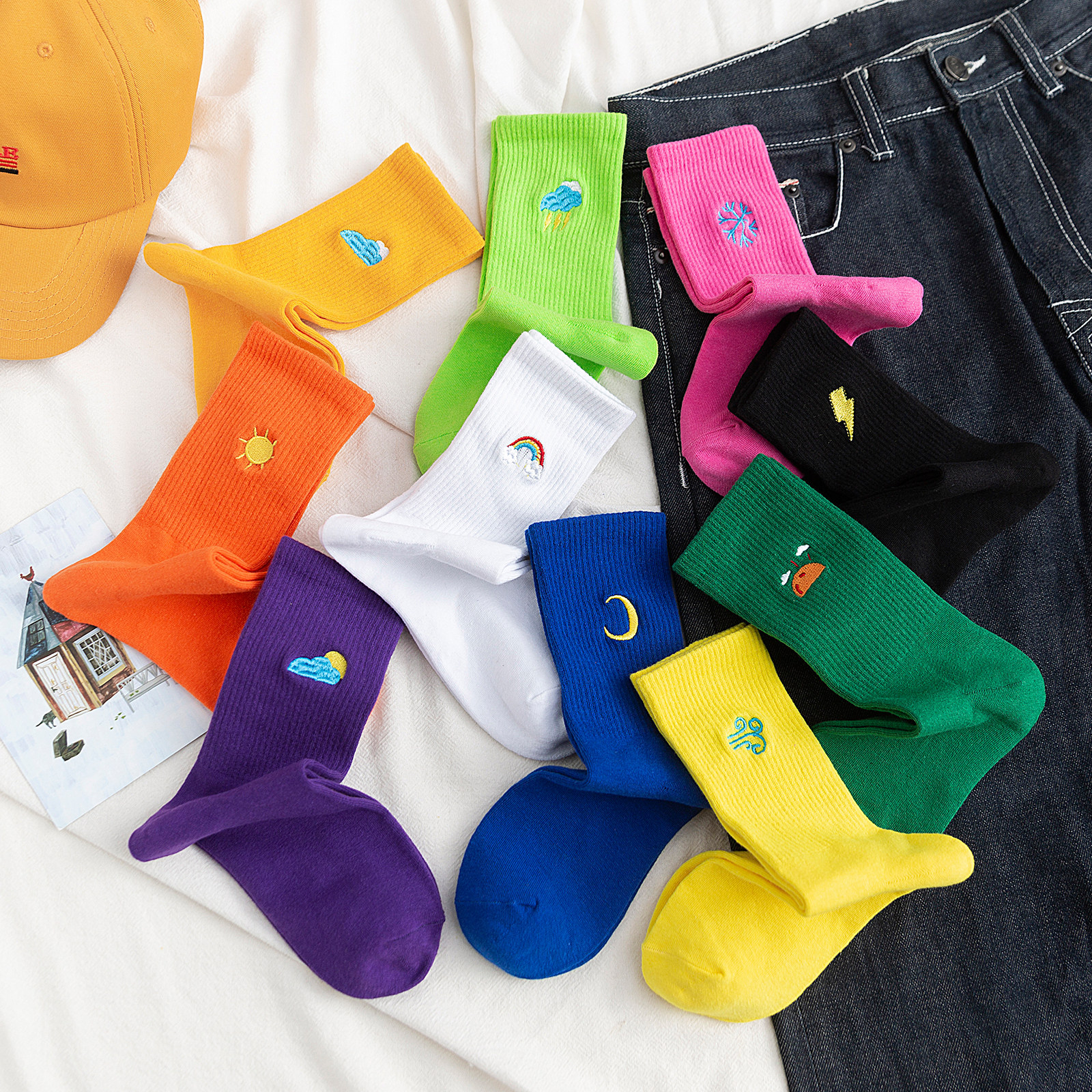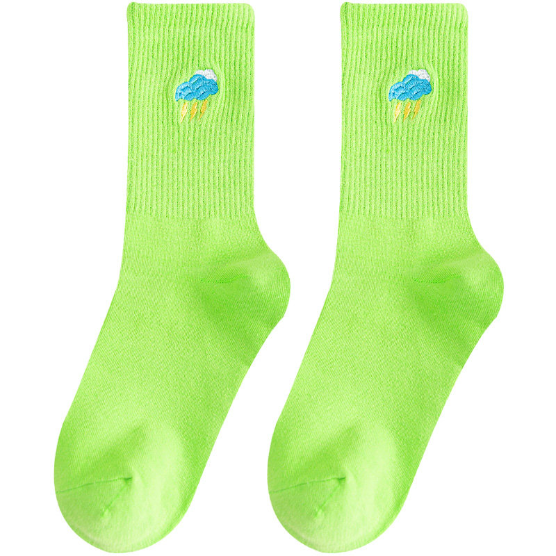 糖果彩色袜子女中筒袜ins潮玫红色夏季薄款长筒长袜纯棉高筒春秋