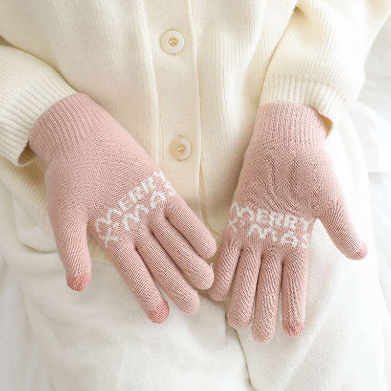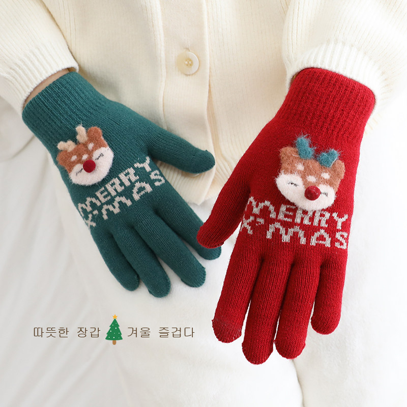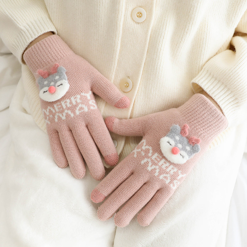 奈良圣诞鹿 双层加厚保暖开车五指骑行手套女冬季韩版可爱学生