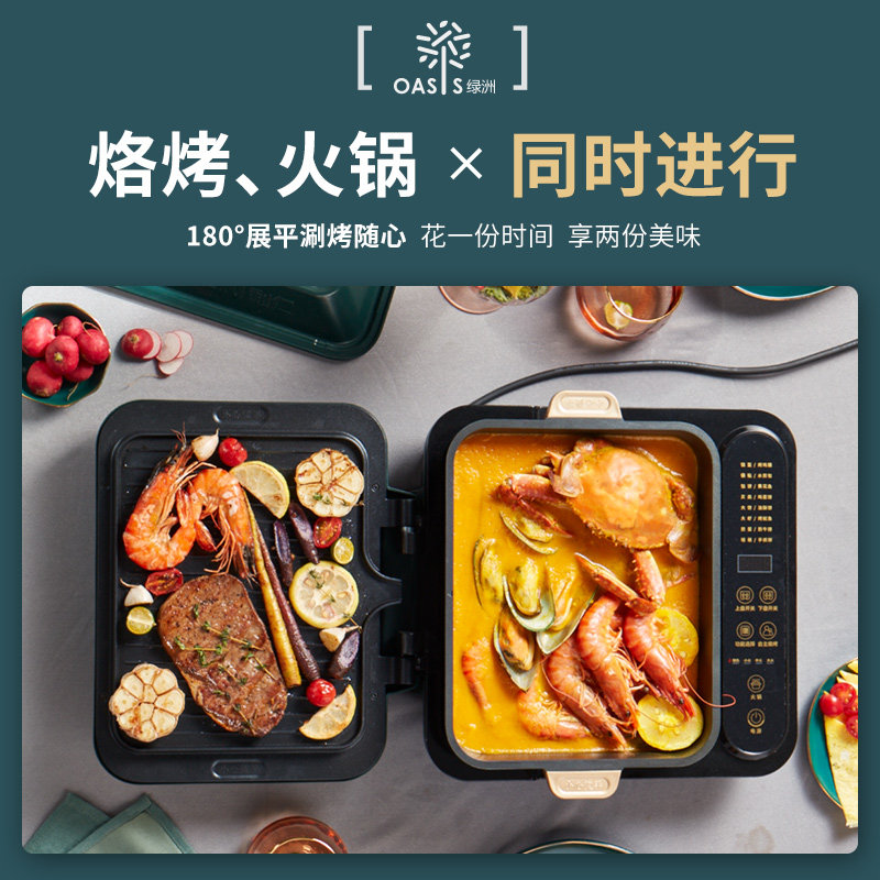 新品绿洲G-1 涮烤一体电饼铛 可拆洗 智能版