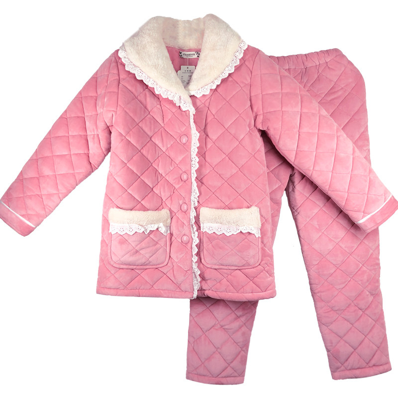 睡衣女秋冬季珊瑚绒加厚三层夹棉袄法兰绒可外穿保暖家居服套装冬