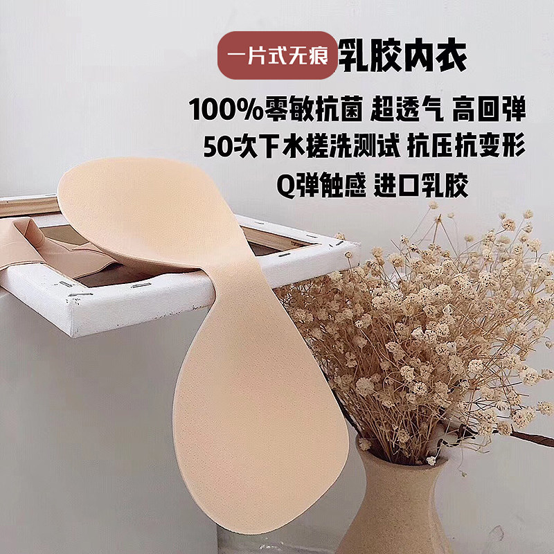 一片式无痕内衣女无钢圈文胸薄款聚拢少女背心式泰国乳胶女士胸罩