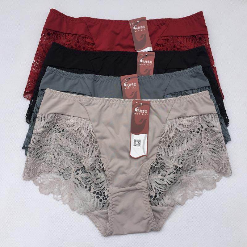 凤起秀美新款薄款无痕内裤女平角蕾丝莫代尔棉中腰4854女士中高腰