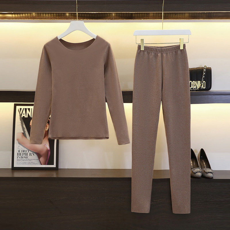 秋衣秋裤女士双面德绒套装加厚内穿打底无痕修身保暖内衣线衣线裤