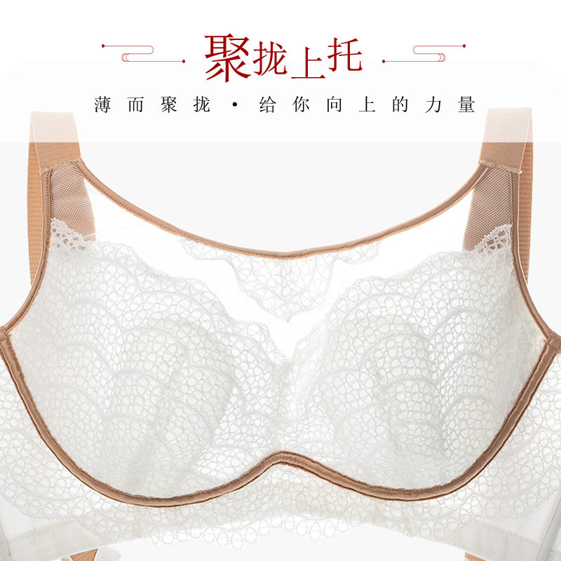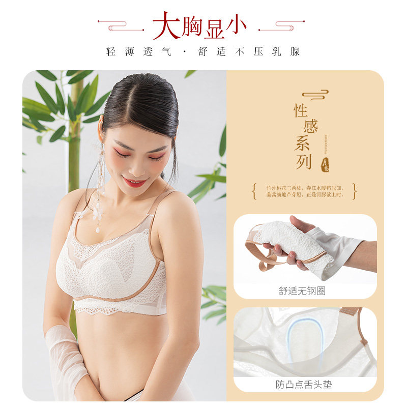 月色大胸显小文胸薄款缩胸防下垂全罩杯内衣文胸无钢圈聚拢收副乳