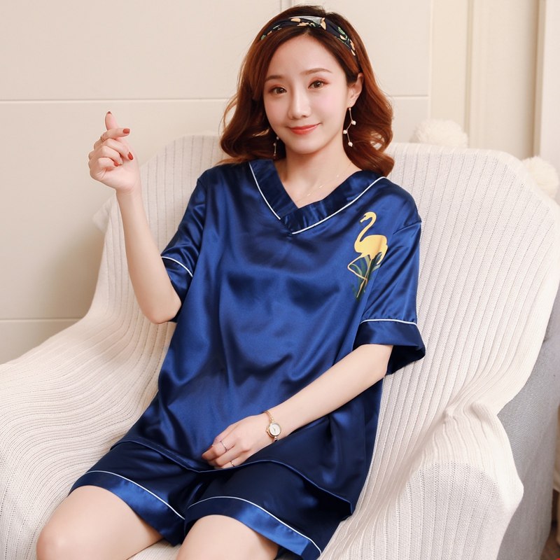 冰丝睡衣女夏短袖短裤丝绸家居服薄款春秋大码学生可爱开衫套装新
