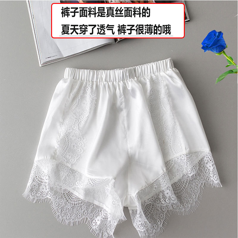 大码睡裤短裤女200斤真丝防走光蕾丝宽松家居胖mm五分薄款安全裤
