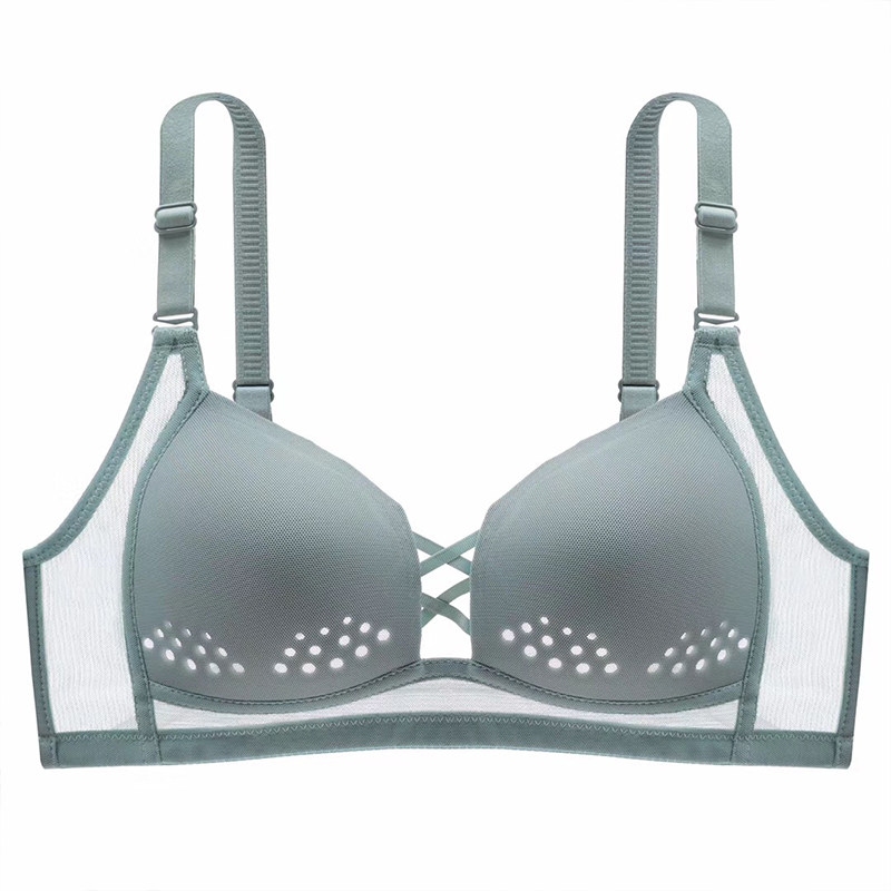 90CD薄款透气文胸无钢圈运动大胸显小性感内衣聚拢胖mm大码缩胸罩
