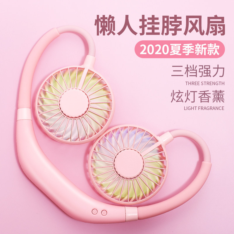 挂脖小风扇便携式双头耳机充电持久静音懒人迷你厨房运动穿戴香薰