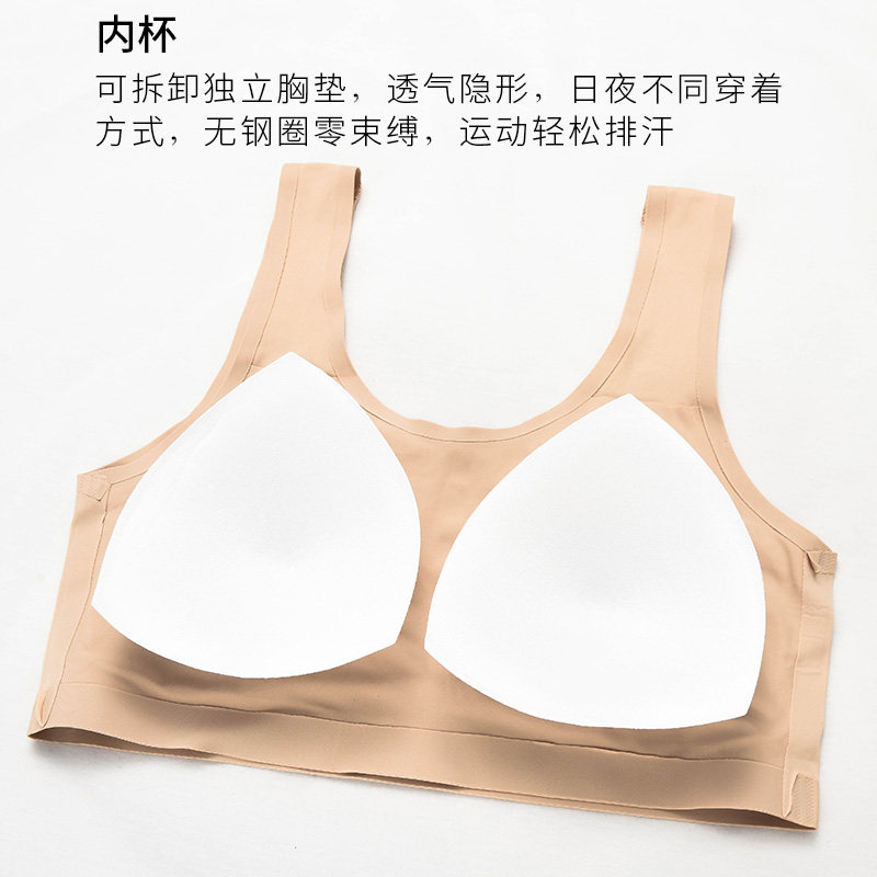 薄款背心式无痕美背胖mm大胸显小无钢圈内衣女大码运动睡眠文胸罩