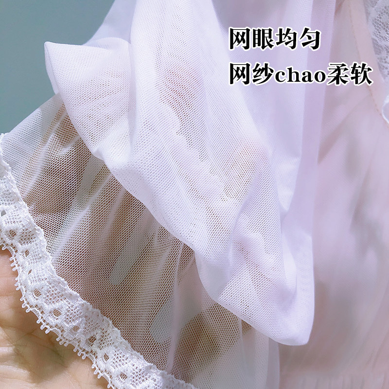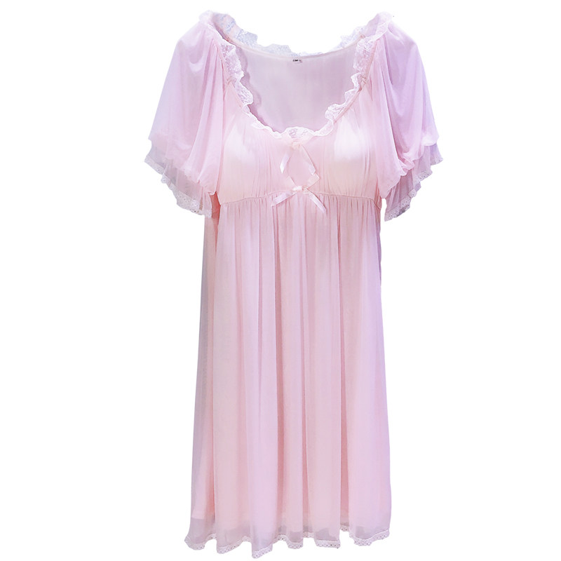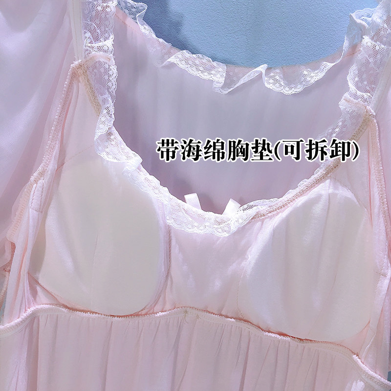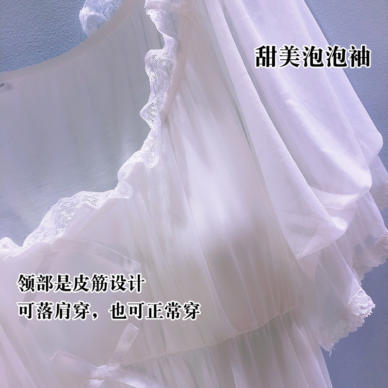 带胸垫纯棉网纱蕾丝睡裙女夏冰丝短袖薄款白色少女性感公主风睡衣