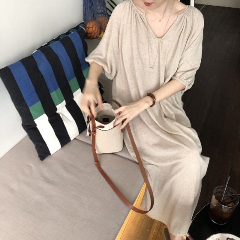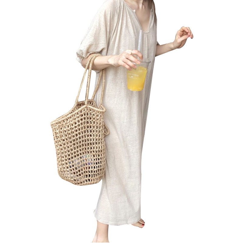 日系复古慵懒宽松睡衣女生夏季棉麻睡裙薄长款大码外穿短袖家居服