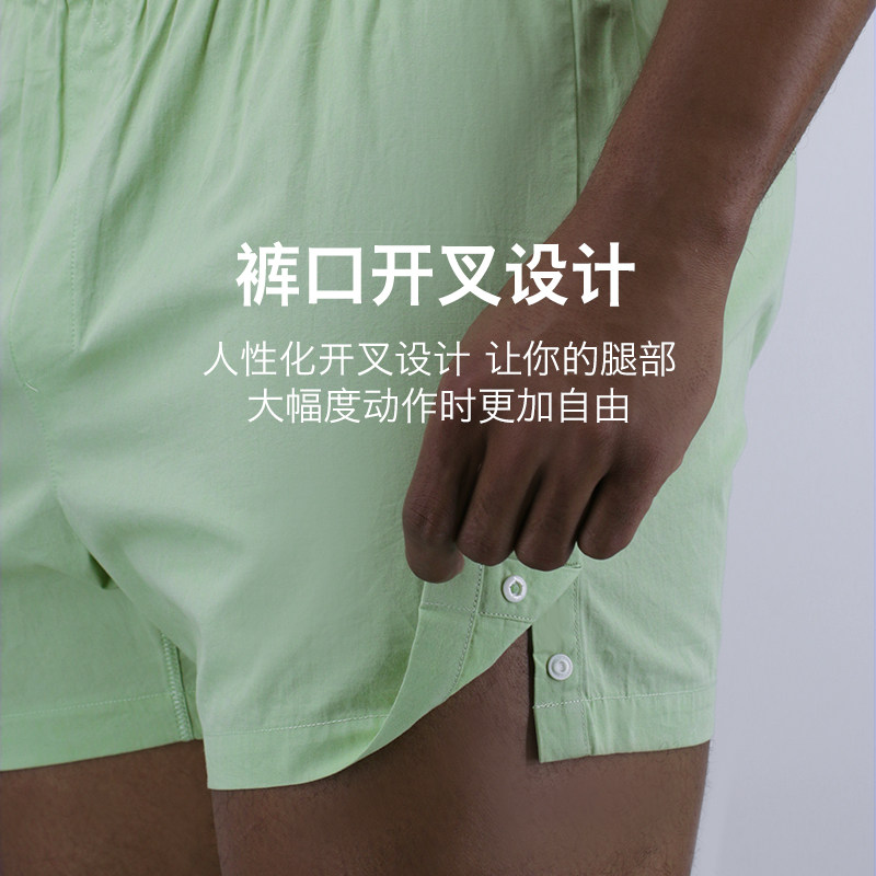 2件装螃蟹秘密 男士平角内裤宽松纯棉阿罗裤家居短裤舒适开叉睡裤