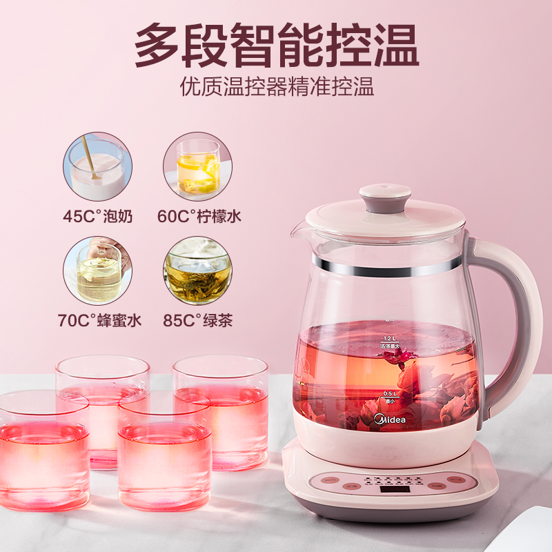 美的养生壶家用多功能大容量煮茶器办公室小型玻璃电水壶养身茶壶