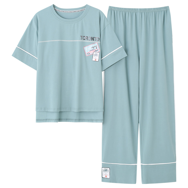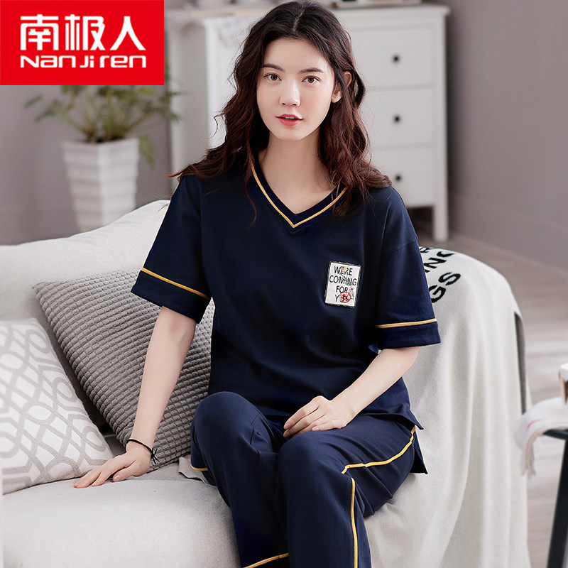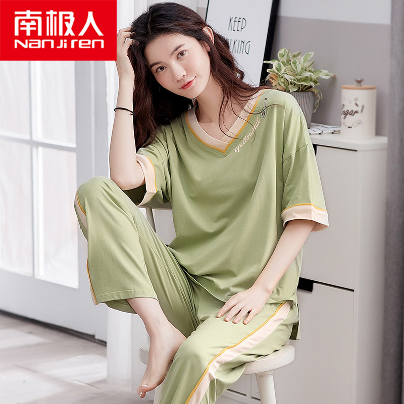南极人纯棉睡衣女夏季短袖长裤两件套装春秋韩版可外穿薄款家居服