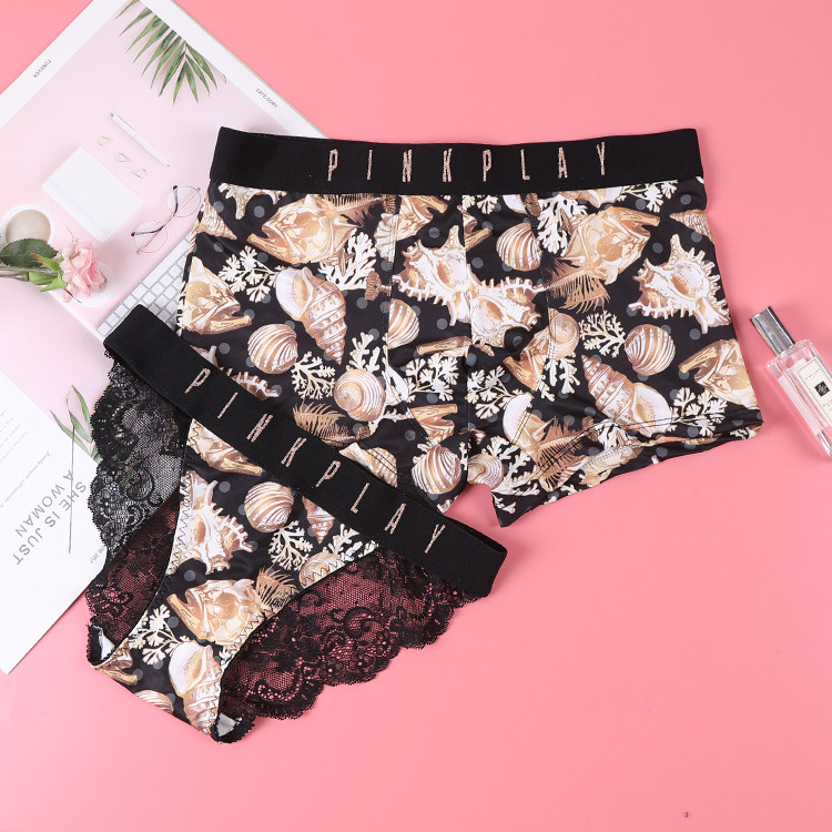 冰丝情侣内裤男女中低腰U凸透气平角三角性感牛奶丝蕾丝速干轻奢