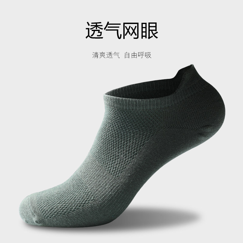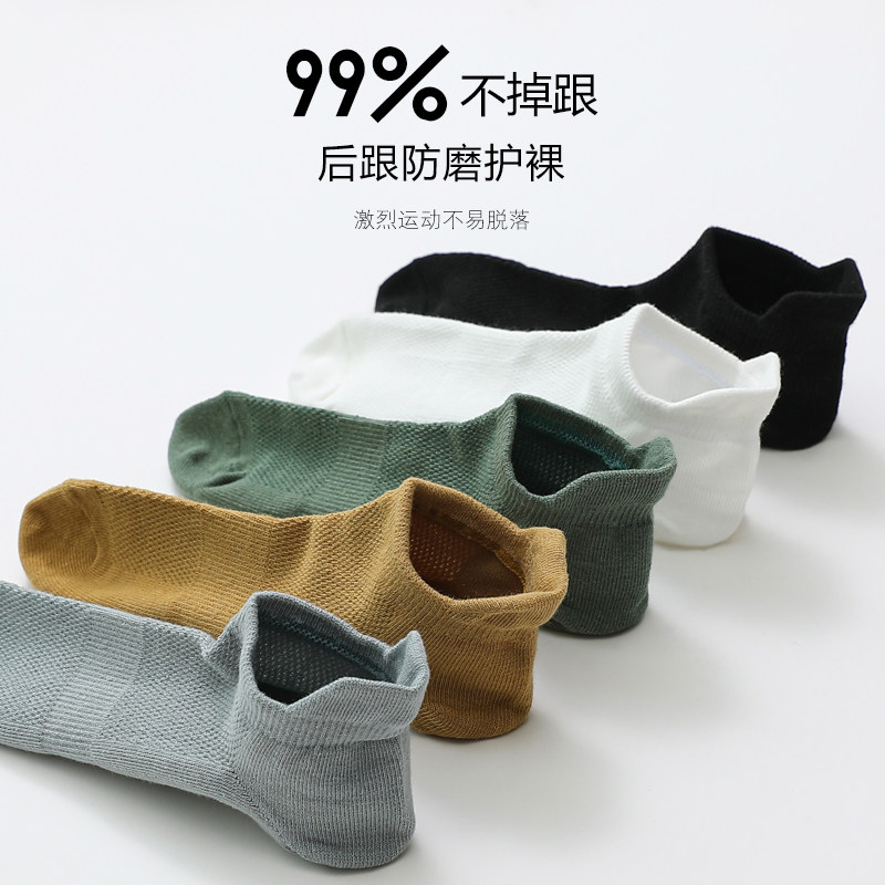 浪莎袜子男夏季薄款网眼男士船袜纯色百搭短袜简约纯棉男袜5双装N