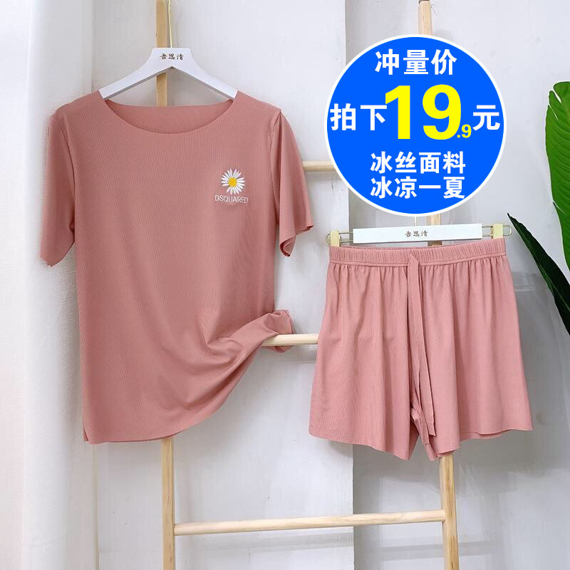 2021新款小雏菊睡衣女士夏季短袖纯棉薄款冰丝短裤两件套装家居服