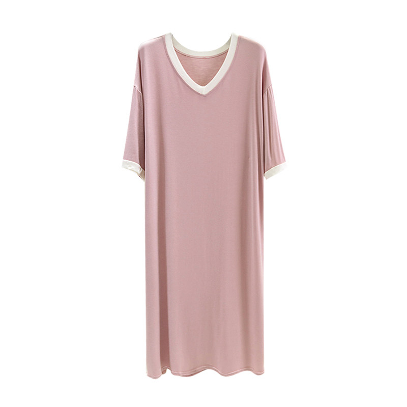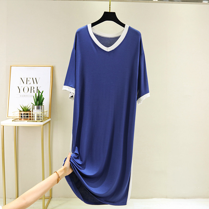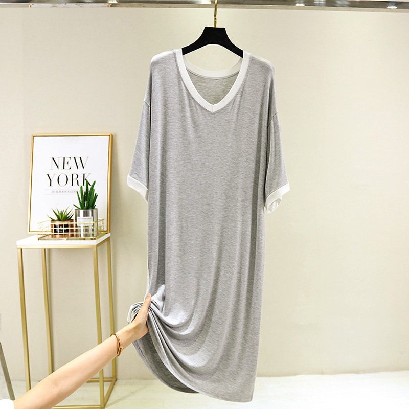 莫代尔睡裙女2021年新款夏短袖连衣裙大码宽松可外穿孕妇睡衣裙薄