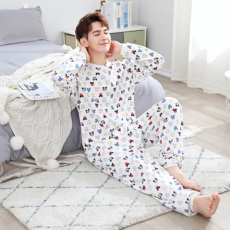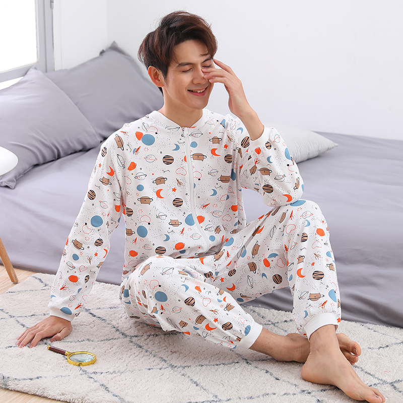 成人连体睡衣男 男士一体家居服薄款春秋纯棉全身大码连衣薄长袖