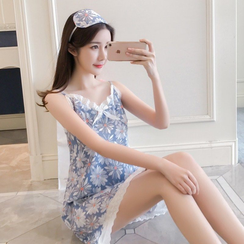 【送眼罩】睡裙女夏公主风睡衣吊带裙少女甜美棉质家居服