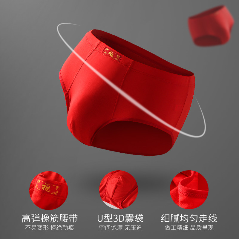 本命年男士三角内裤男短裤高腰加肥加大码红色莫代尔透气肥佬胖子