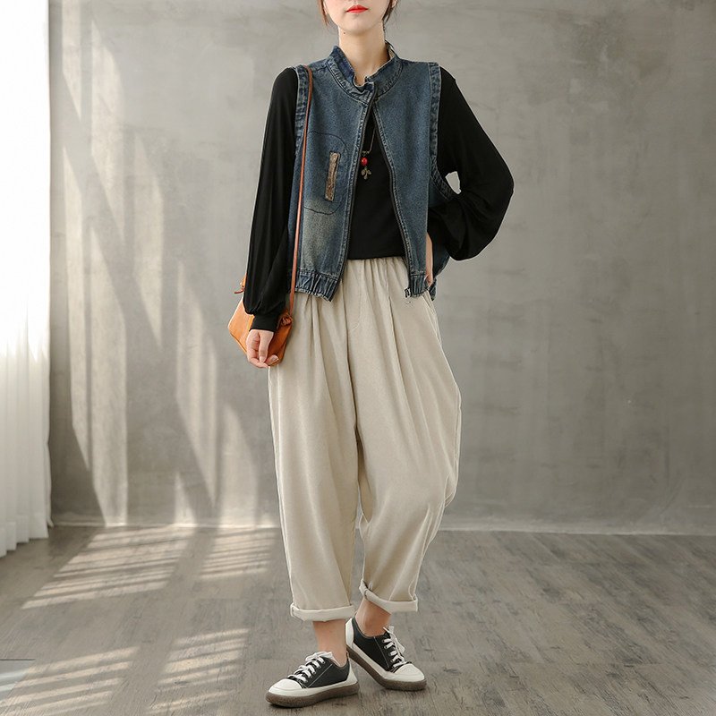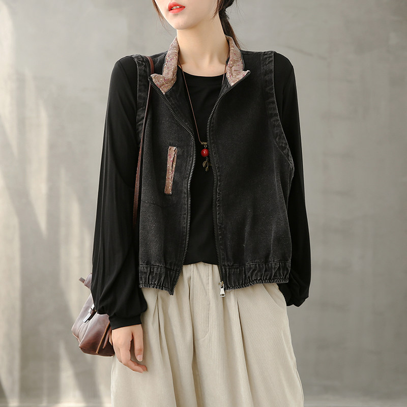 dza 女士马甲背心外套秋冬2022新款宽松韩版牛仔马夹外穿坎肩上衣