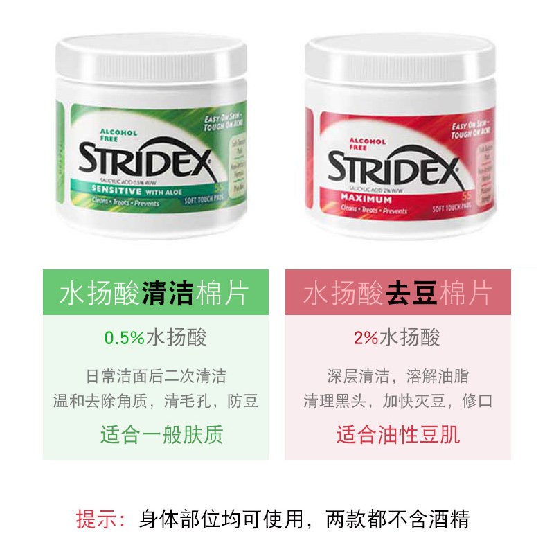 stridex水杨酸棉片去闭口粉刺黑头刷酸祛痘淡化痘印修复毛孔粗大