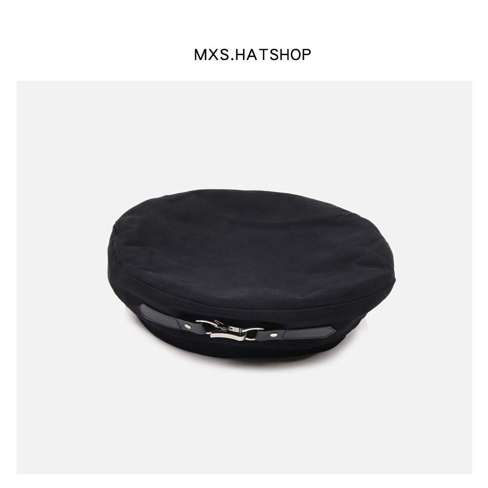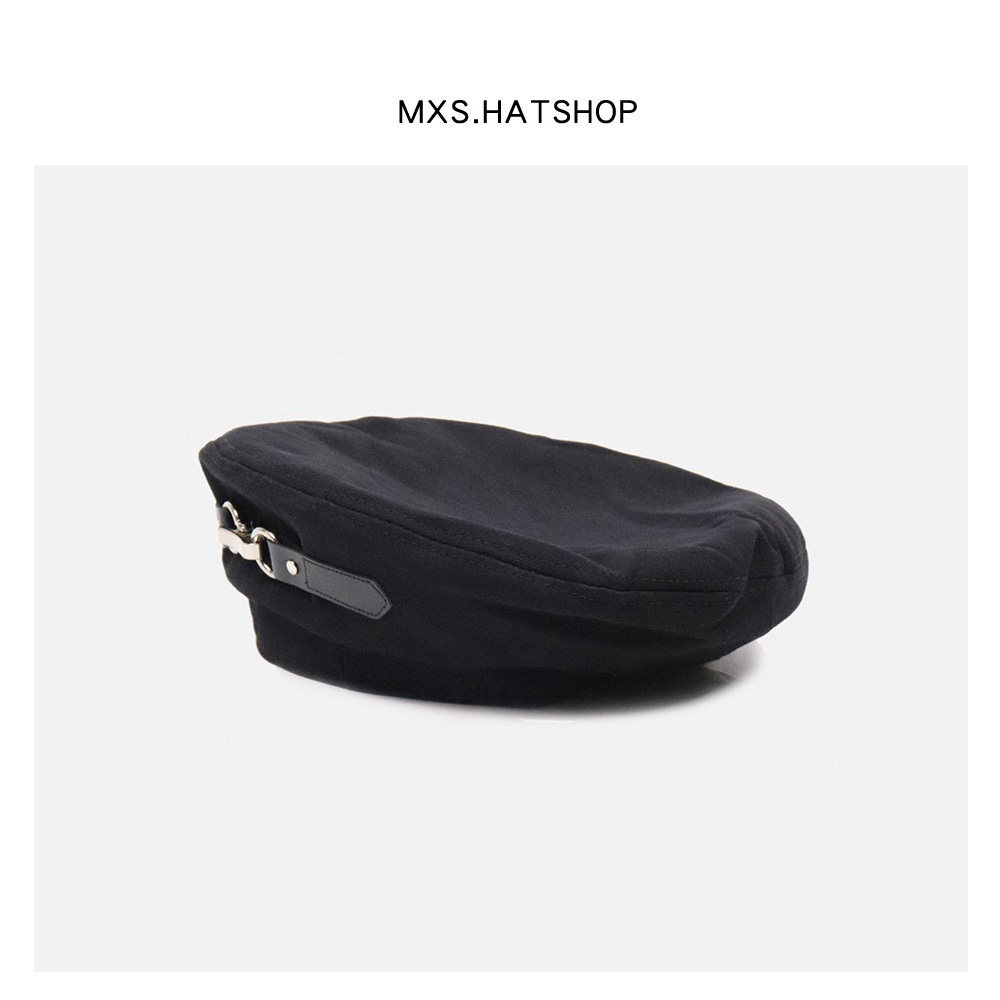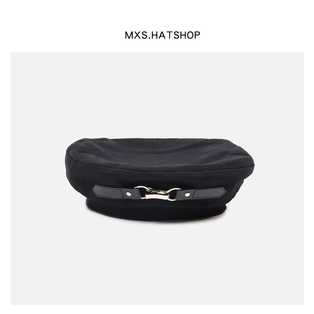 自制黑色贝雷帽女ins皮扣设计款暗黑日系小众百搭英伦复古画家帽