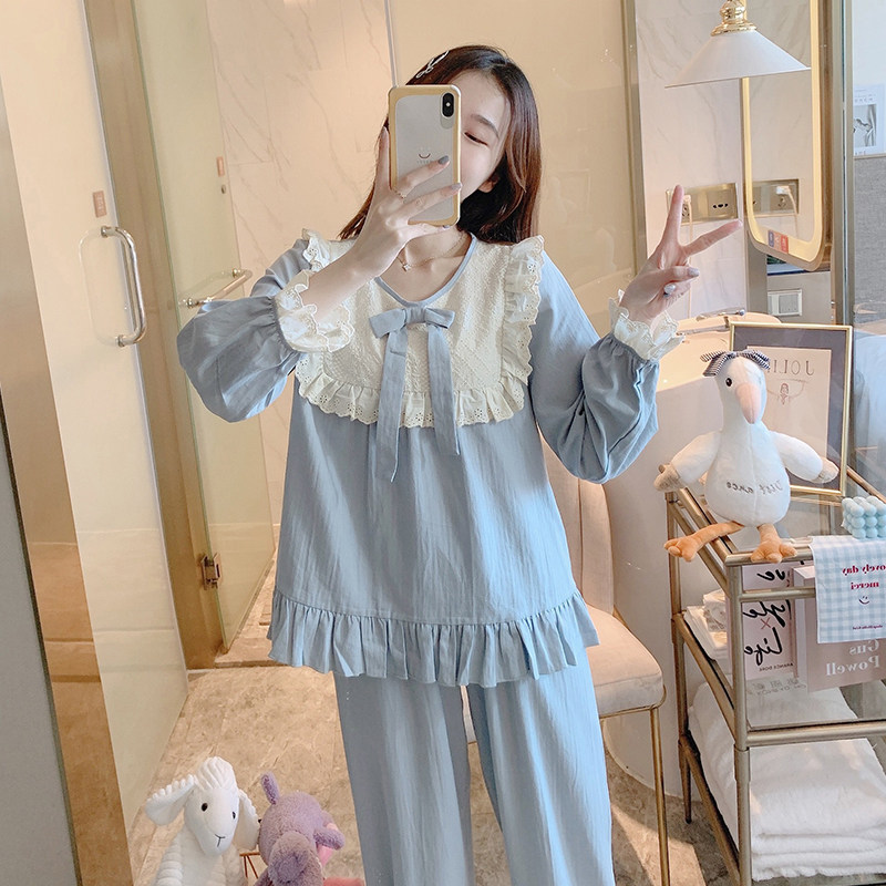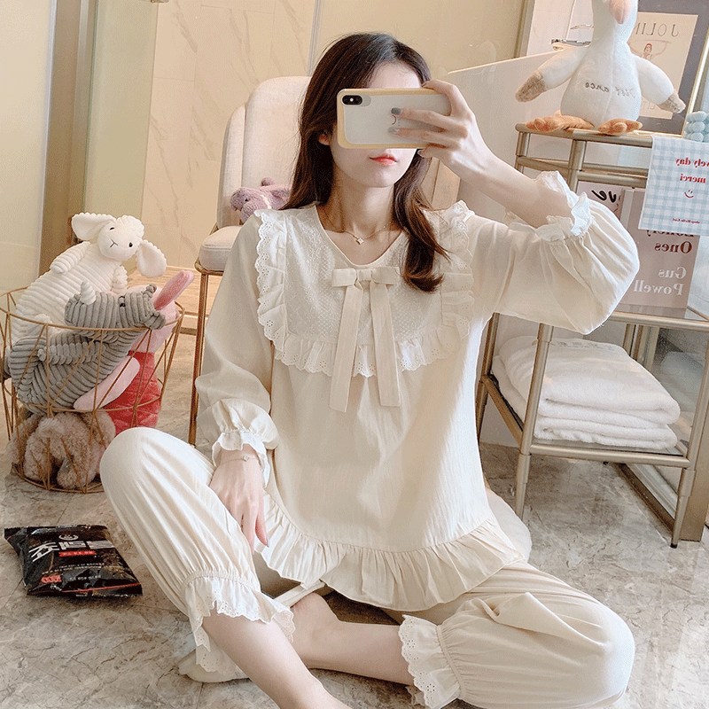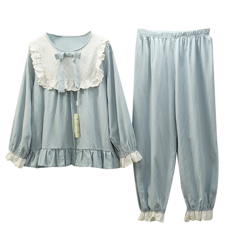 2021夏季新款睡衣女春秋长袖纯棉全棉家居服套装可爱甜美两件套