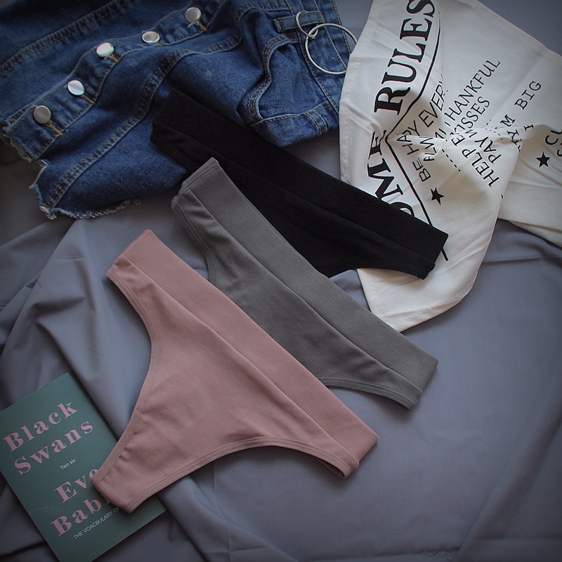 纯棉内裤女低腰性感舒适透气女士高开叉健身运动丁字裤蜜桃臀T裤