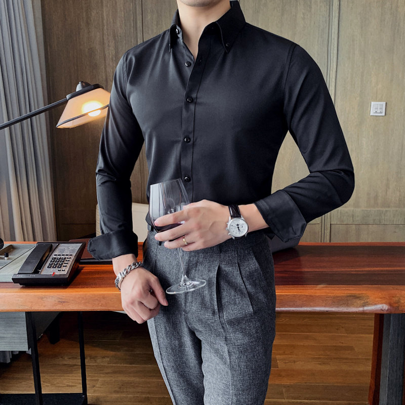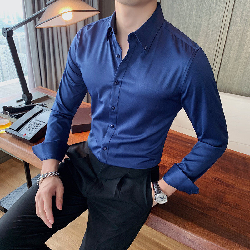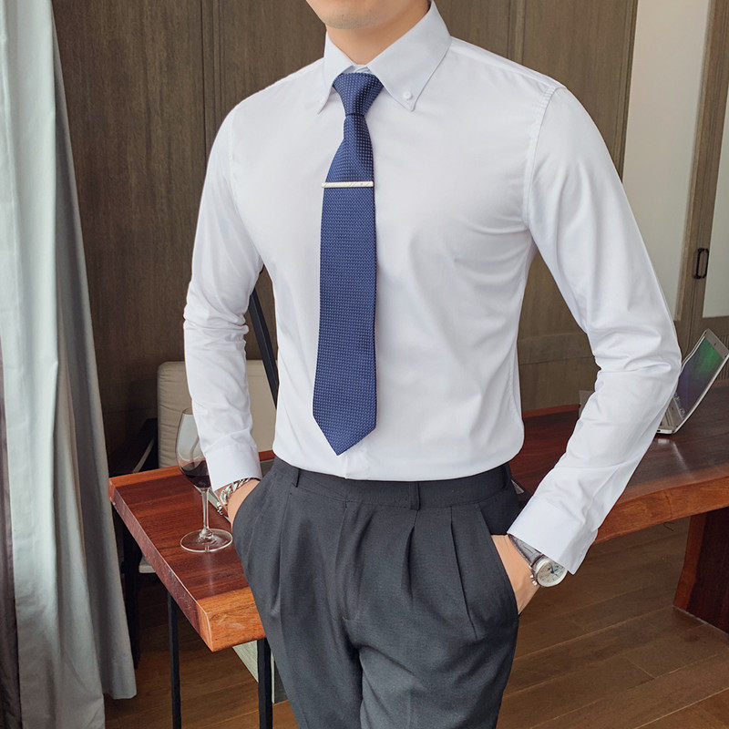 春秋男士纯色长袖衬衫韩版修身男商务休闲大领白色衬衣西装打底衫