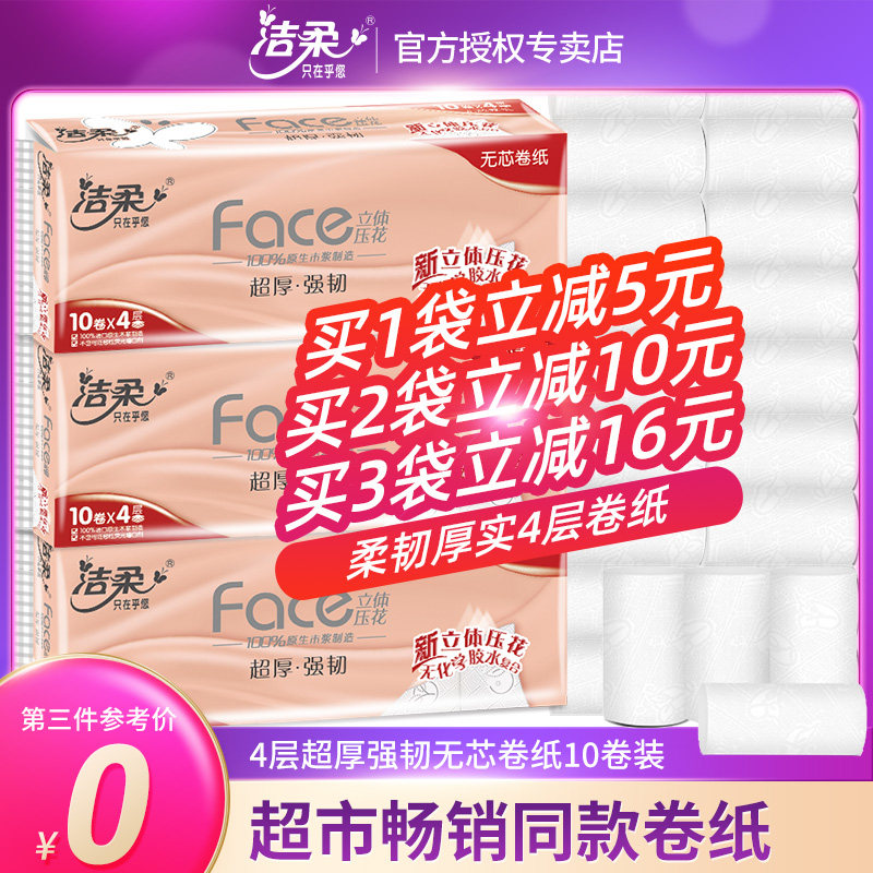 洁柔卷纸卫生纸家用实惠装纸巾草纸抽厕纸无芯卷筒纸面巾纸不堵塞