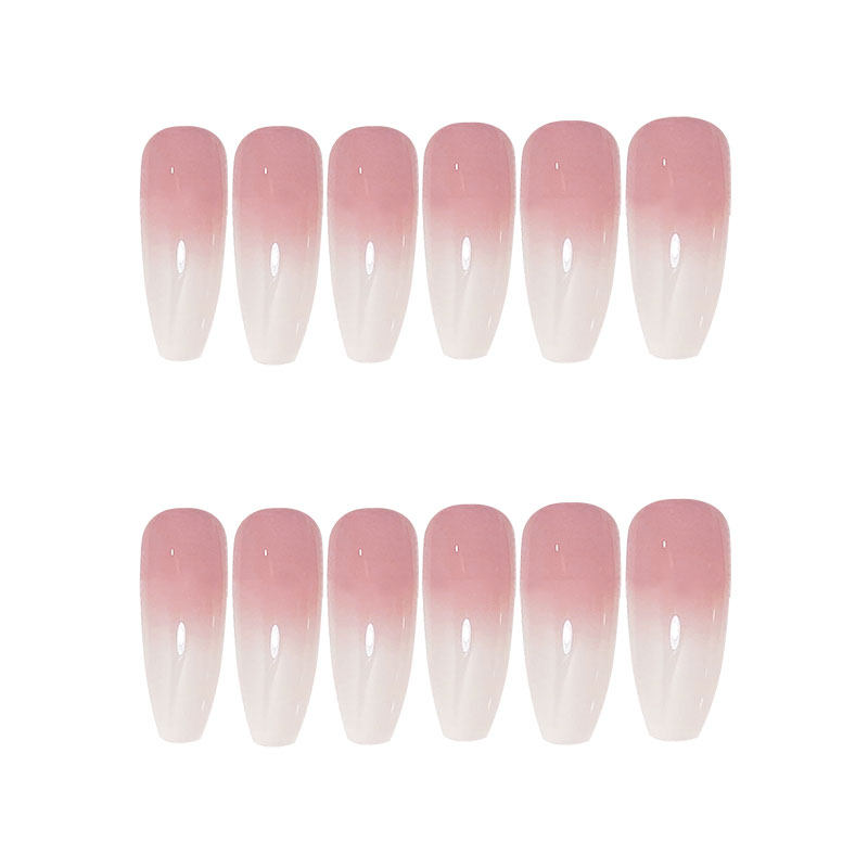 法式裸粉渐变超长梯形甲片自然服帖美甲片成品可拆卸网红欧美甲片