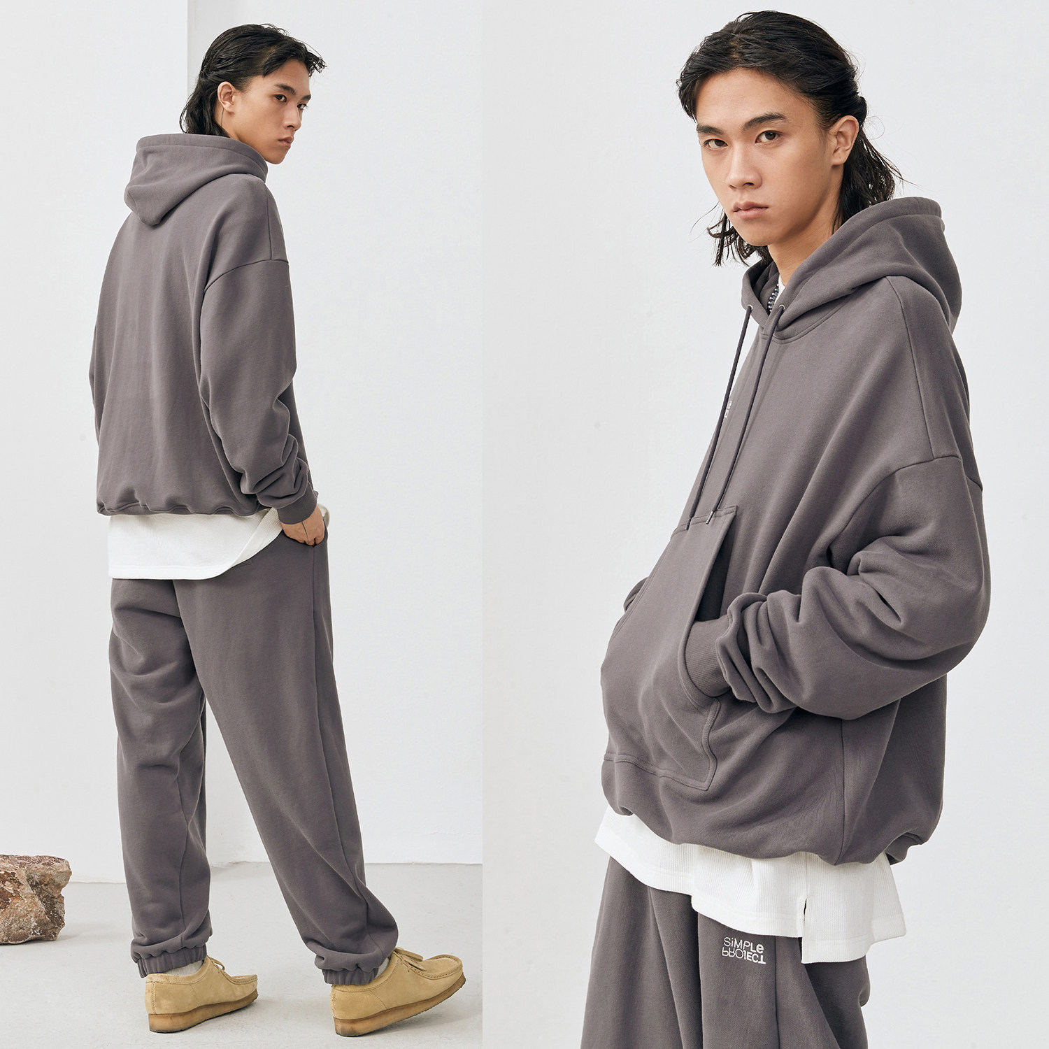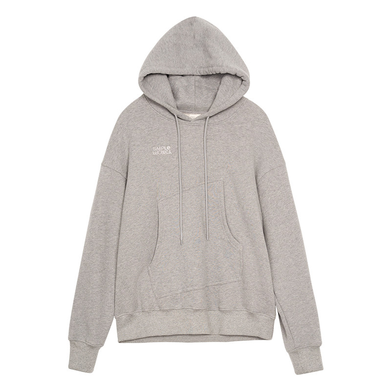 Simple Project春秋厚款三种灰度刺绣斜口袋连帽卫衣情侣套头帽衫
