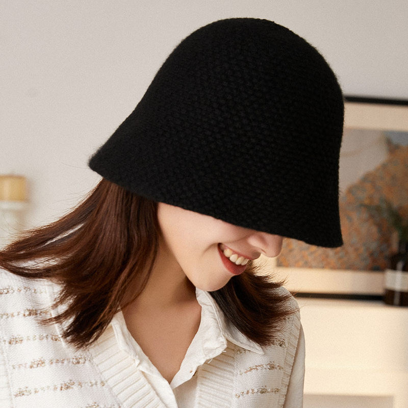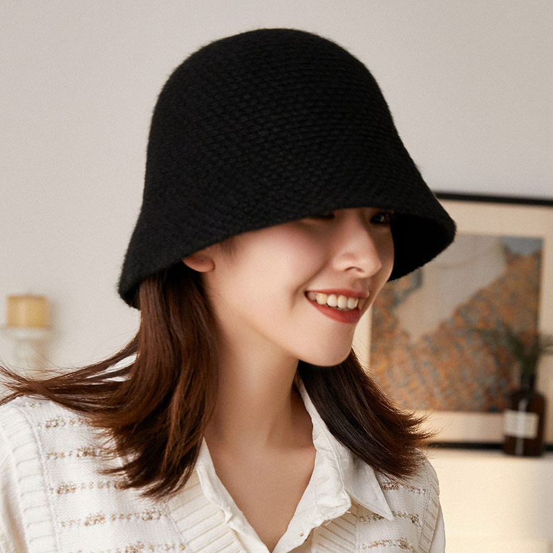 秋印 羊毛渔夫帽子女纯色圆顶盆帽秋冬保暖韩版针织帽情侣逛街