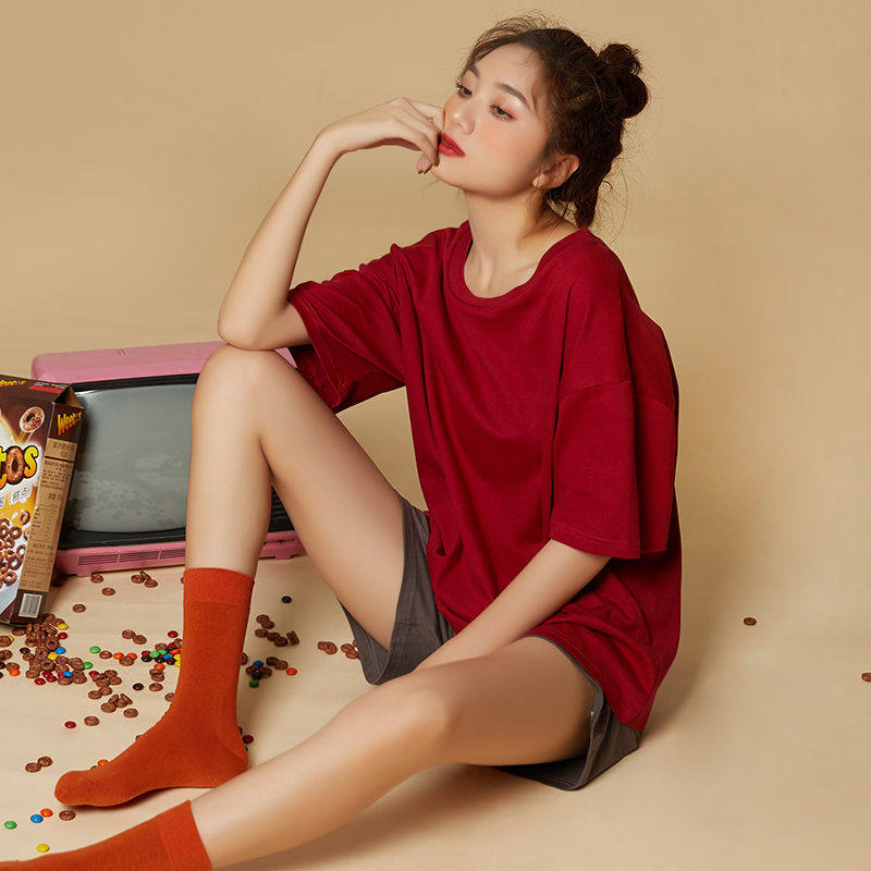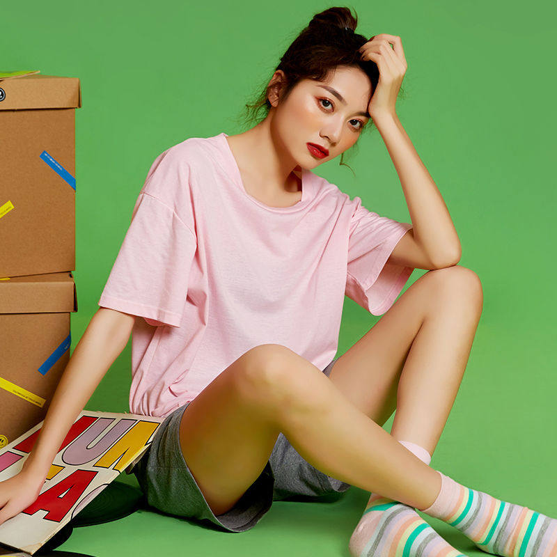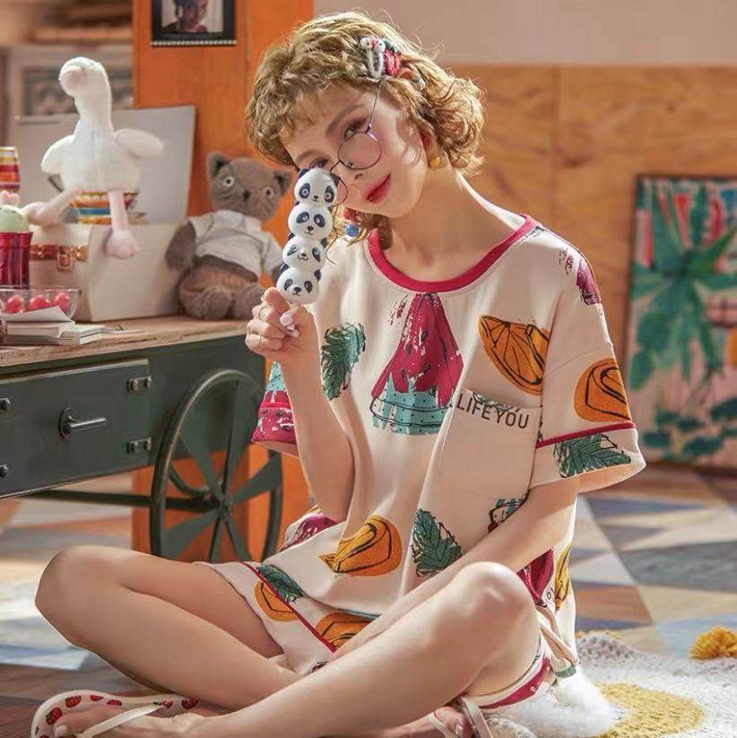 睡衣女春夏季短袖短裤纯棉套头两件套装休闲韩版卡通可爱家居服