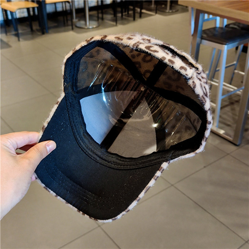帽子女秋季时尚豹纹兔毛棒球帽秋冬遮阳帽户外出游加厚鸭舌帽女