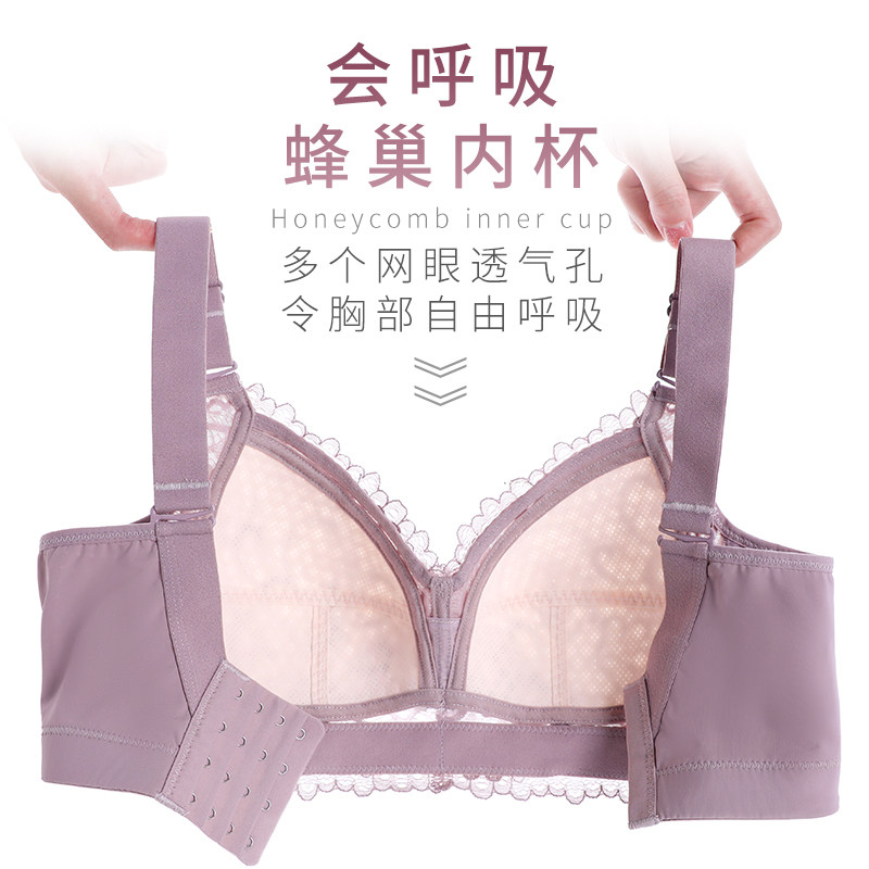 文胸罩无钢圈薄款蕾丝性感舒适聚拢透气上托收副乳女内衣大胸显小