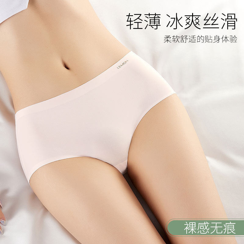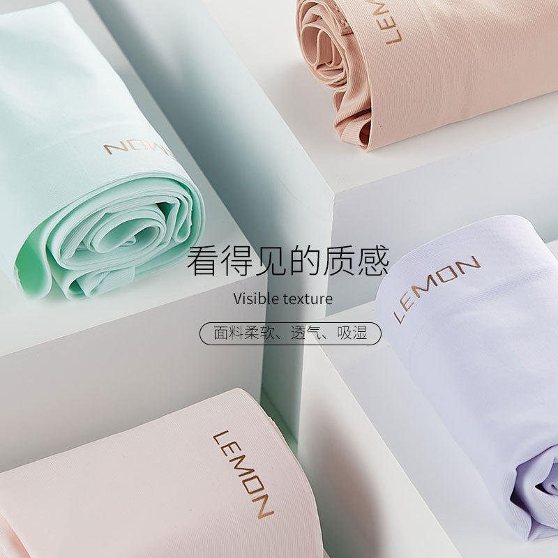 LEMON冰丝柠檬无痕透气中腰内裤裸感蚕丝抗菌裆女士三角裤5条盒装